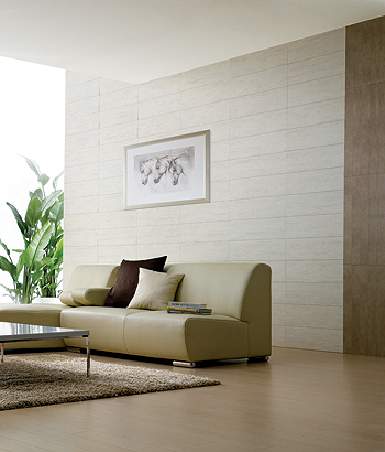 옅은 컬러의 광택이 좋은 석회암 트라버틴 패턴의 또 다른 시리즈. 은은한 크림 컬러가 편안하고 따뜻하며 특히 내추럴 모던 스타일의 공간에 완벽하게 잘 어울린다.