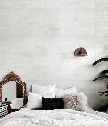 연한 그레이 빛깔의 섬세한 질감이 돋보이는 석재 디자인으로 고급스러운 공간을 연출하기 좋은 패턴