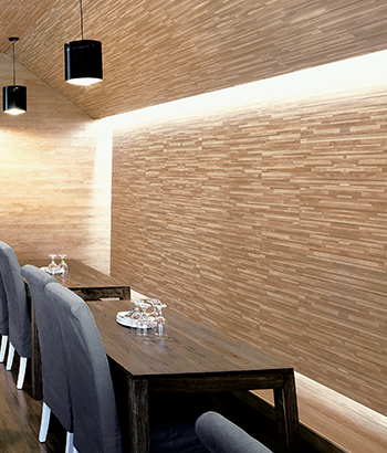 따뜻한 컬러의 자연스러운 오크 집성목 패턴으로 어느 공간에나 잘 어울리며 편안하고 내추럴한 분위기를 연출할 수 있다.