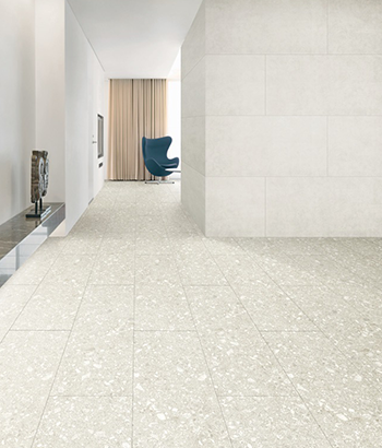 내추럴하면서 트렌디한 바닐라 컬러의 테라조로, 세련된 공간에 잘 어울리는 패턴