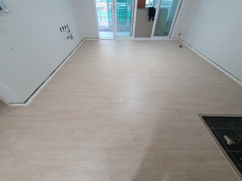 부엌은 싱크대 설치 전으로 마루 시공까지 깔끔하게 진행해 드리고 추후 인테리어 작업을 위해 보양작업을 진행해 드렸습니다