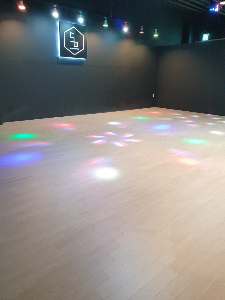 해당 작업장은 #송도댄스학원 작업장으로 화려한 조명에 마루가 은은한 조명을 받아