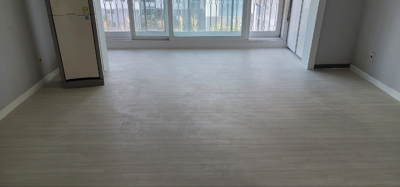 베이직화이트 컬러에 따뜻한 느낌이 있는 깨끗한 마루 입니다.