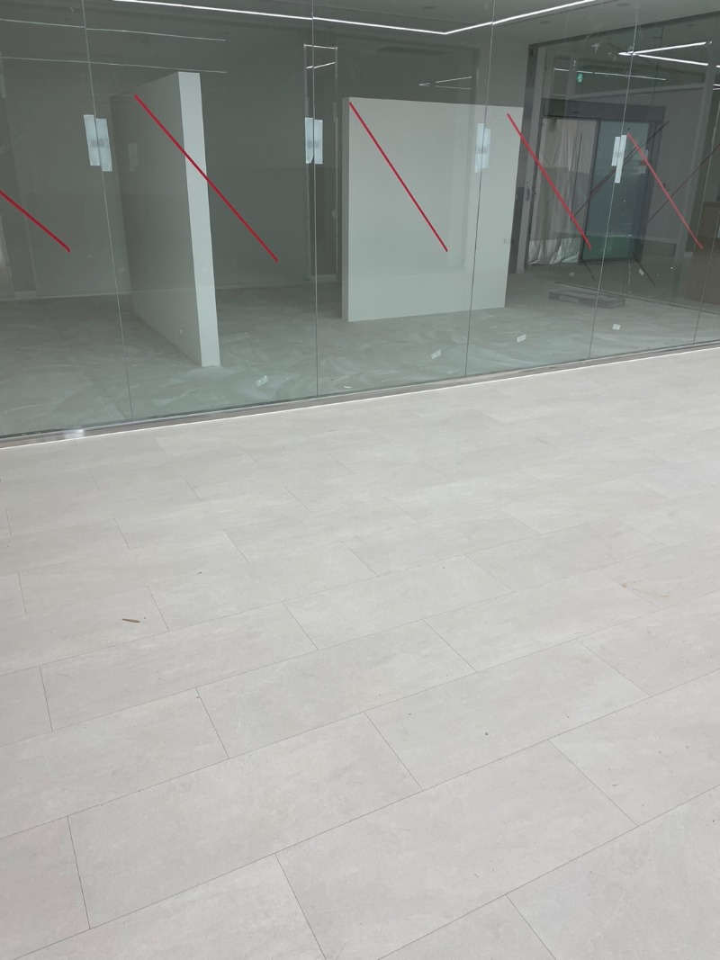 사무실 room 안쪽만 화이트걸레받이를 시공하였고 로비는 문과 파티션으로 실리콘 마무리만