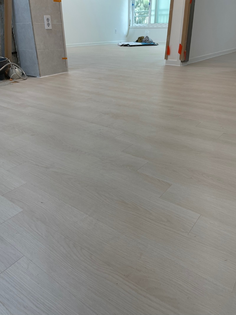 #화이트걸레받이 와 함께 마루시공 완료 모습