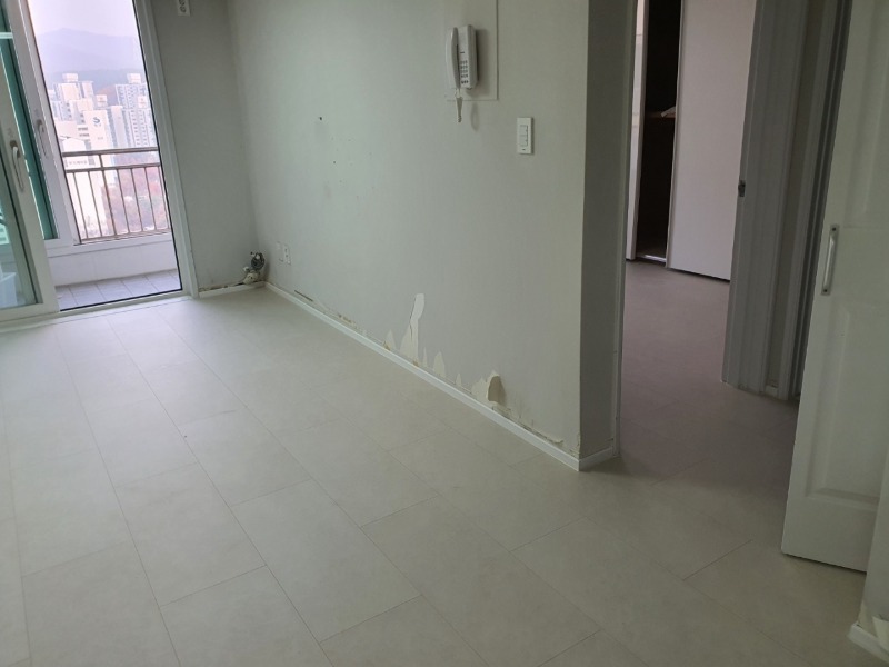 거실이 확장된 고객님 댁은 전체 시공에 들어갔으며, 일반 마루에 비해 3배 넓은 광폭사이즈다 보니 체감 면적이 넓어 보이는 시원한 시각적 효과도 있는거 같습니다.  시공하시면서 걸레받이도 고객님의 전체 인테리어와 조화롭게 흰색으로 진행하셨으며, 마지막에 실리콘 작업으로 마무리 해 드렸습니다.